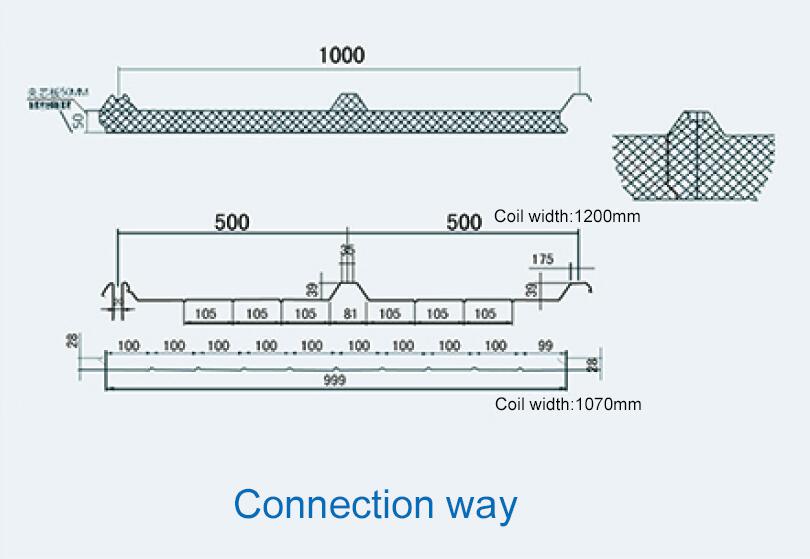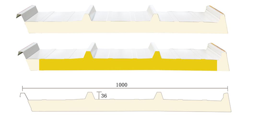 Four wave type sandwich panels roof: