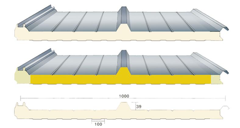 Hiden screws type sandwich panels roof: